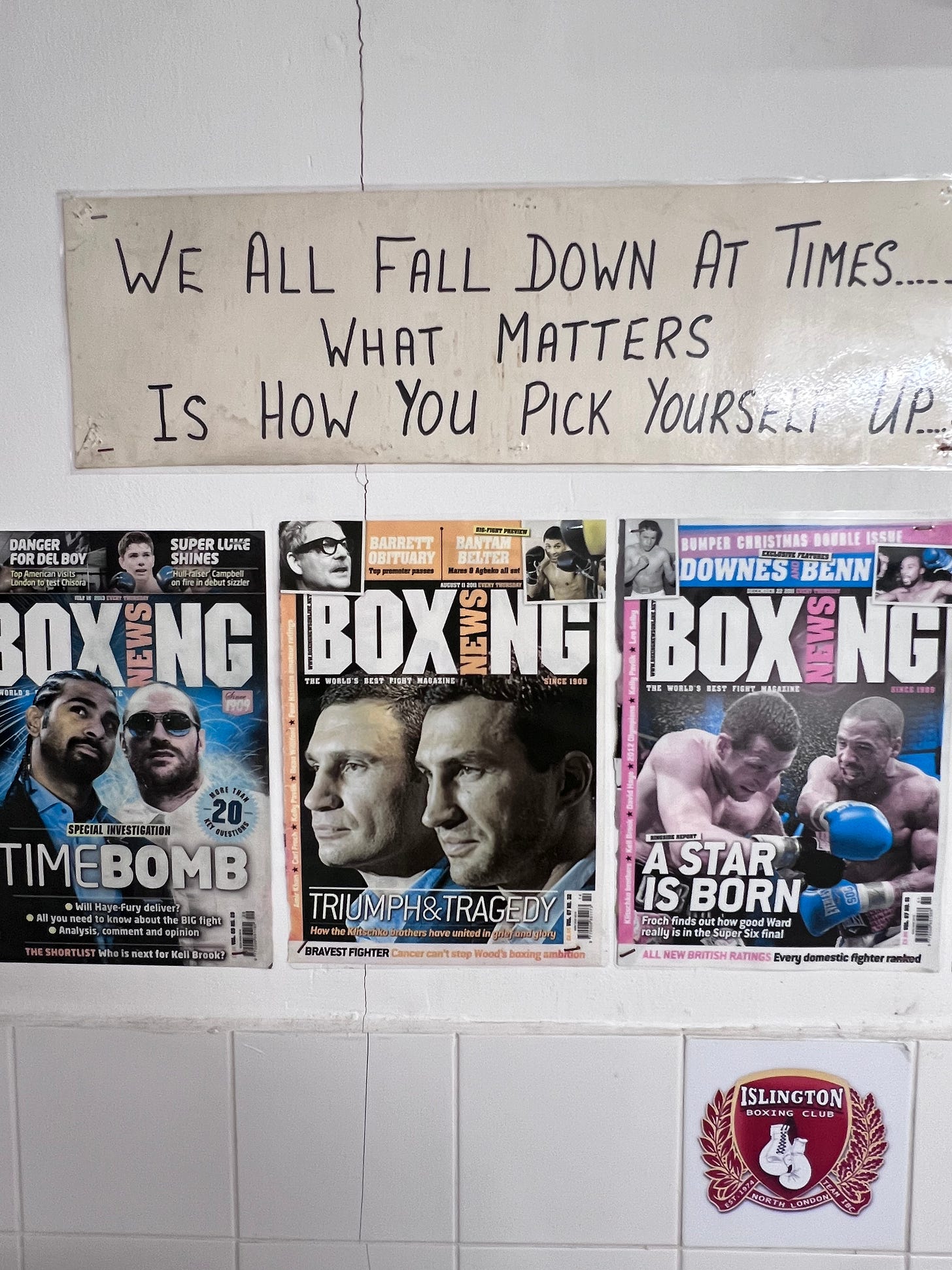 On Saturday morning I cycled to the gym, but on my way made a detour to the local boxing club. I’m not sure what compelled me to, but something was pulling me there.